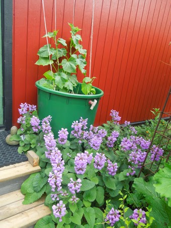 På "kaffeburen" gjord av armeringsmatta klättrar Clematis "Warsawska Nike" varje år med sina stora lila blommor. Den blir bara finare och finare för varje år. Förbluffar mig med sin storhet numera efter att ha kämpat lite med sitt rotsystem. Men så gör klematis. De kan låta blommorna och bladen stå tillbaka för att istället låta rotsystemet växa till sig. Men när det väl kommit igång finns det inget som kan stoppa dem!